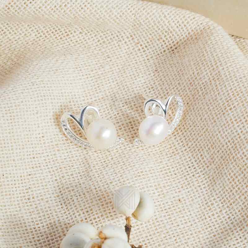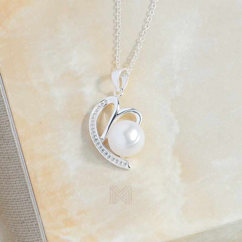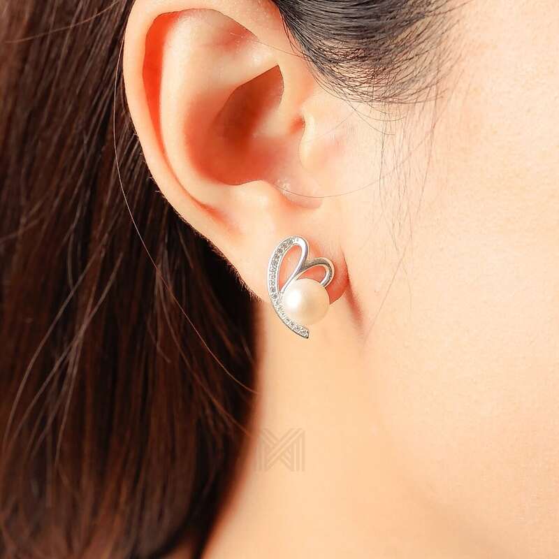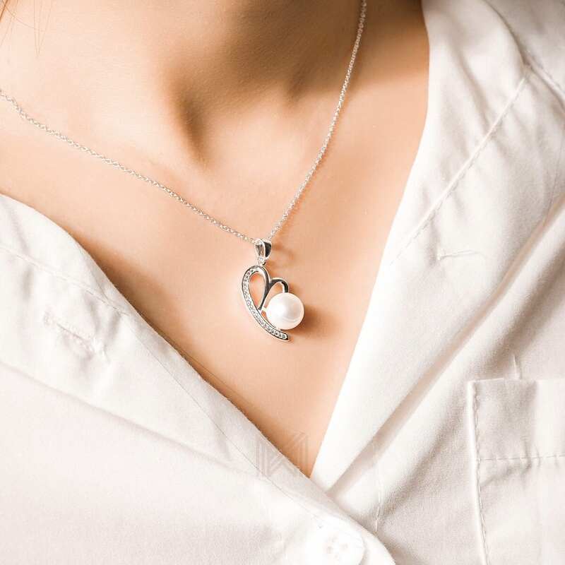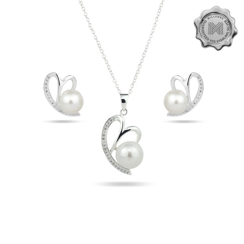 MILLENNE Made For The Night Freshwater Pearl Heart Cubic Zirconia Silver Necklace and Earrings Set with 925 Sterling Silver