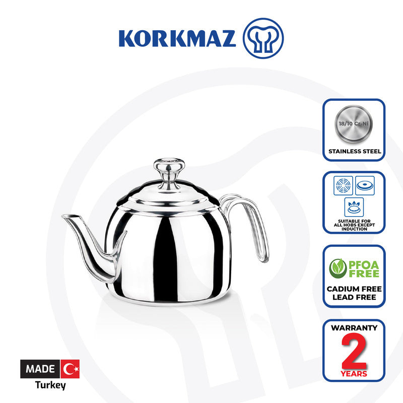 Korkmaz Droppa 1.1 Lt Premium Stainless Steel Teapot - Gas Stove Compatible, Made In Turkey