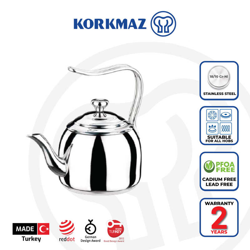 Korkmaz Droppa Teapot Premium Stainless Steel, Made in Turkey