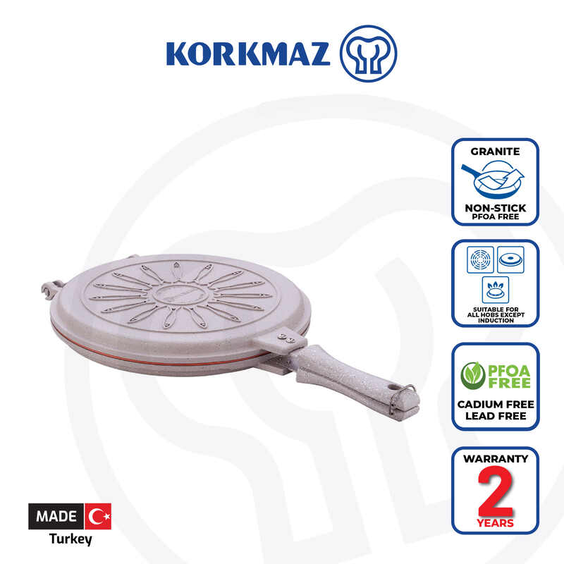 Korkmaz Double Pan, The Perfect Pancake Maker – Nonstick Copper Easy to Flip Pan, Double Sided Frying Pan for Fluffy Pancakes, Omelets, Frittatas