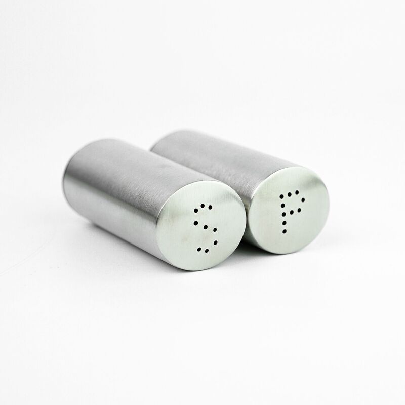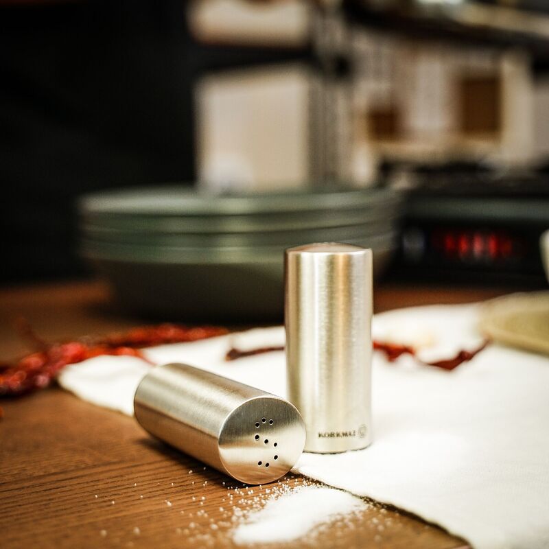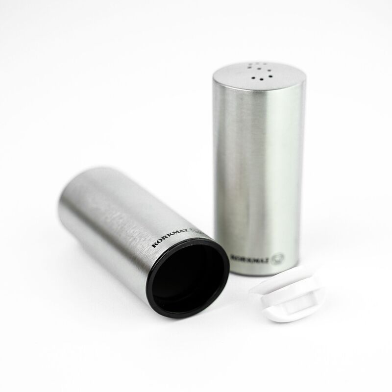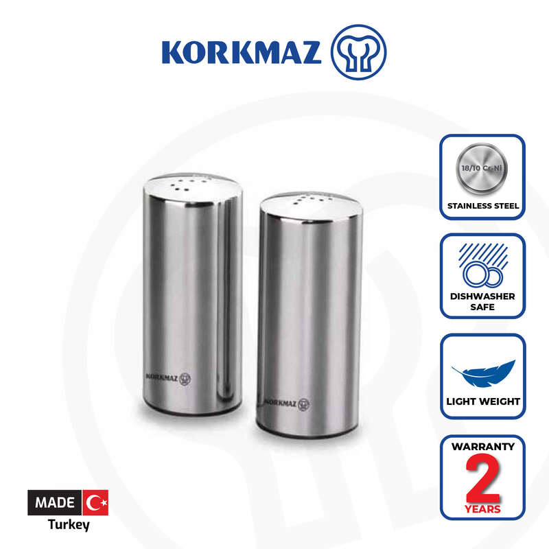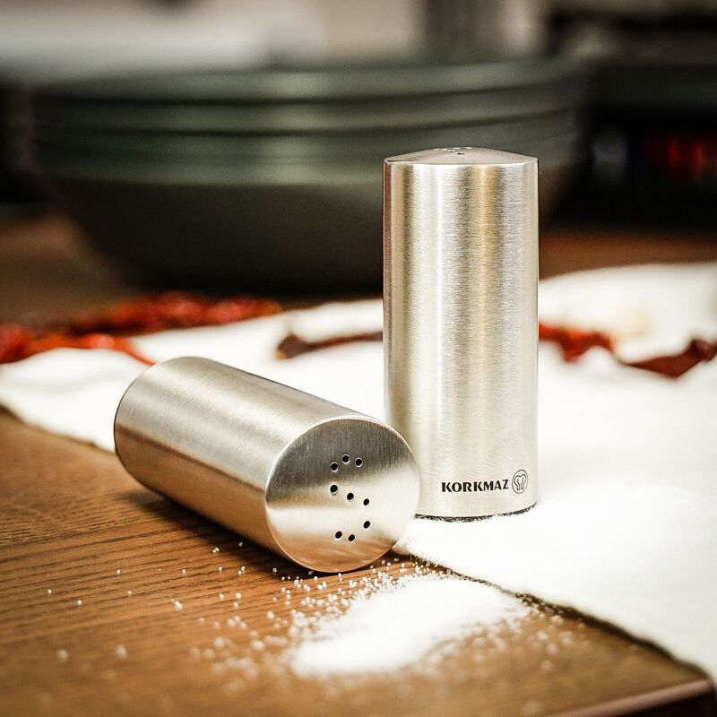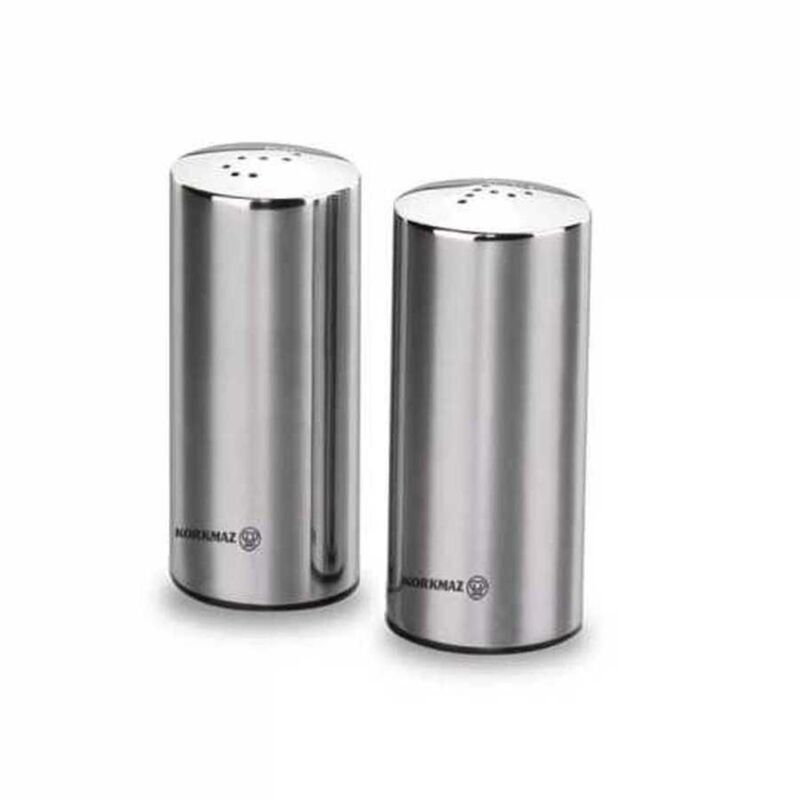 Korkmaz Duo Satin Salt and Pepper Shakers Set - Stainless Steel Body, Made in Turkey