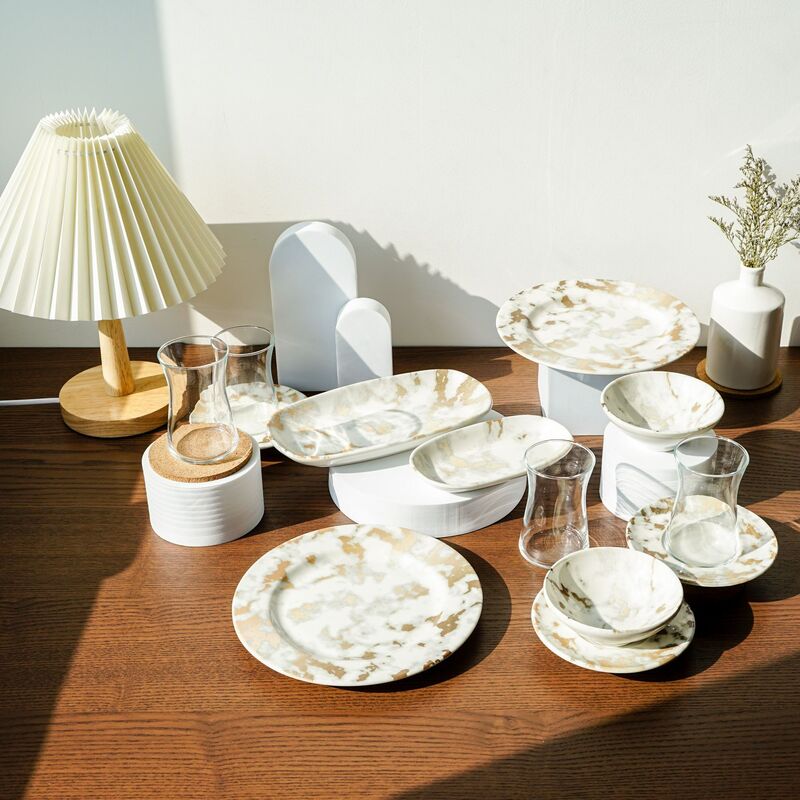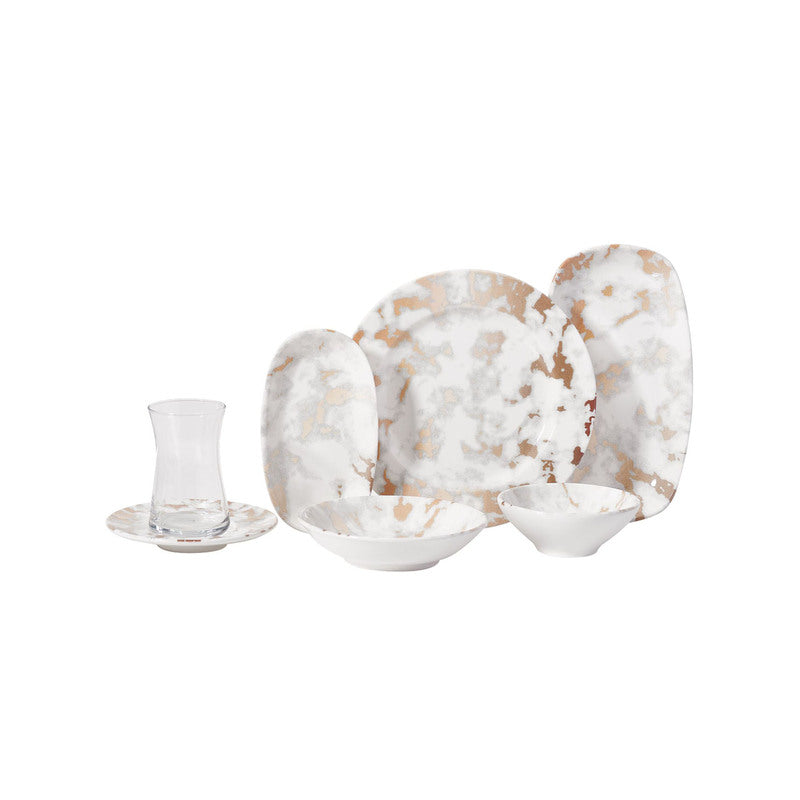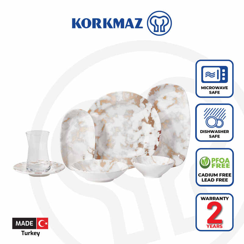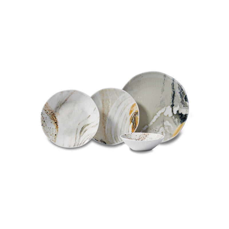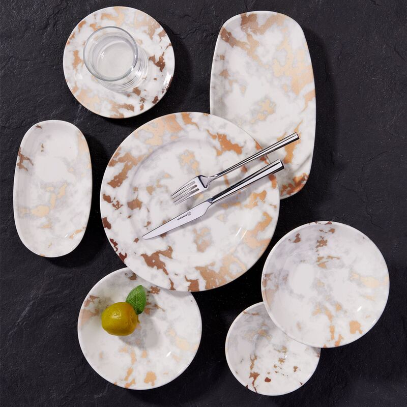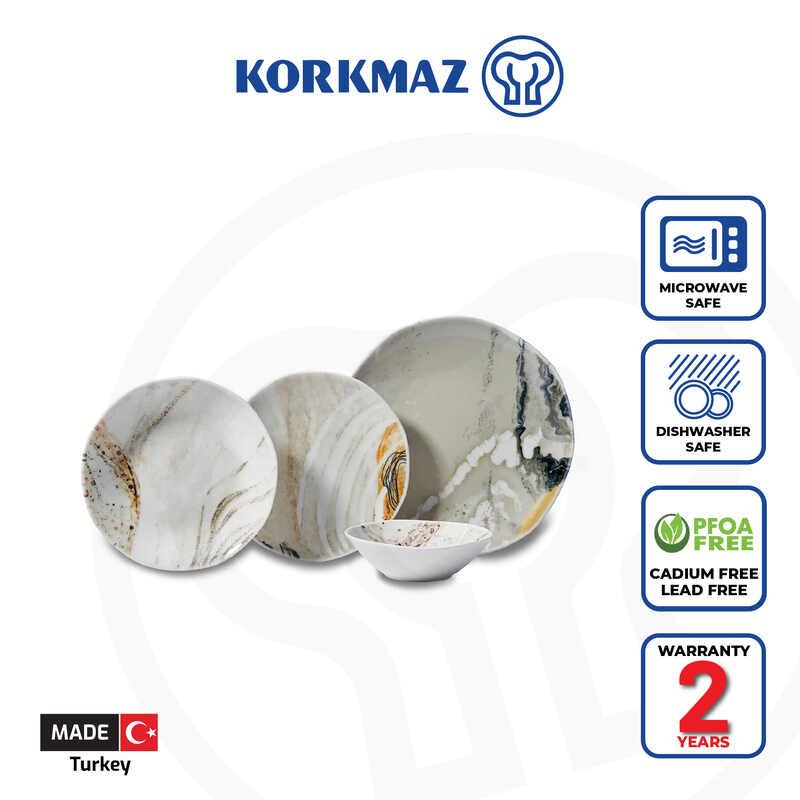 Korkmaz Eterna Collection Marble Design Dinnerware Set - 16-Piece (Plates, Bowls) for 4 People, Made In Turkey