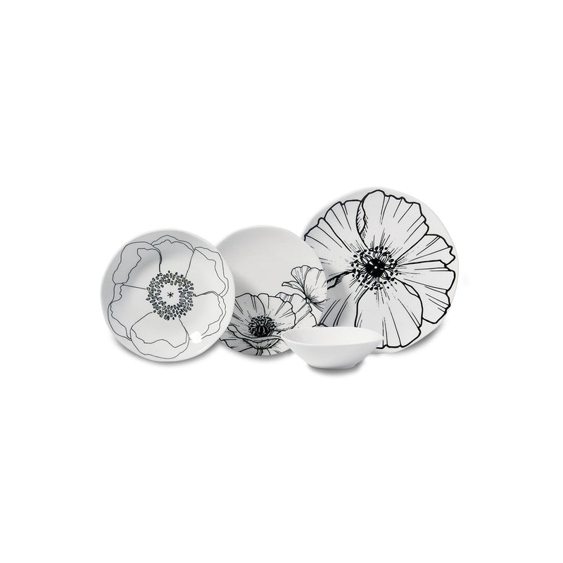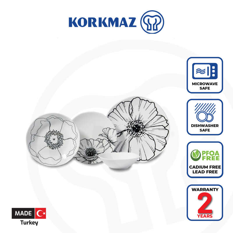 Korkmaz Eterna Collection Flower Figures Dinnerware Set - 16-Piece (Plates, Bowls) for 4 People, Made In Turkey