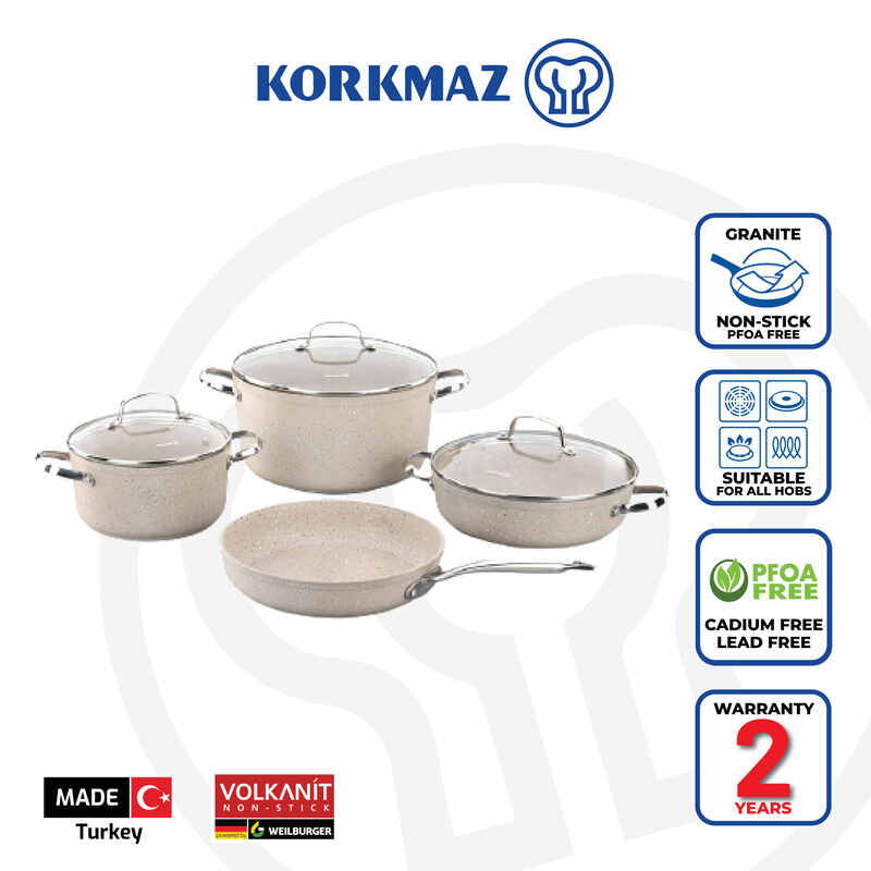 Korkmaz Granita Non-Stick Cookware Set, 7-Piece, Induction Compatible, Stock Pot Set with Frying Pan, Made in Turkey