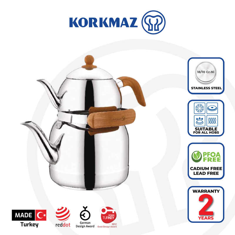 Korkmaz Foresta Claret Red Premium Quality Stainless Steel Teapot Set - Made in Turkey