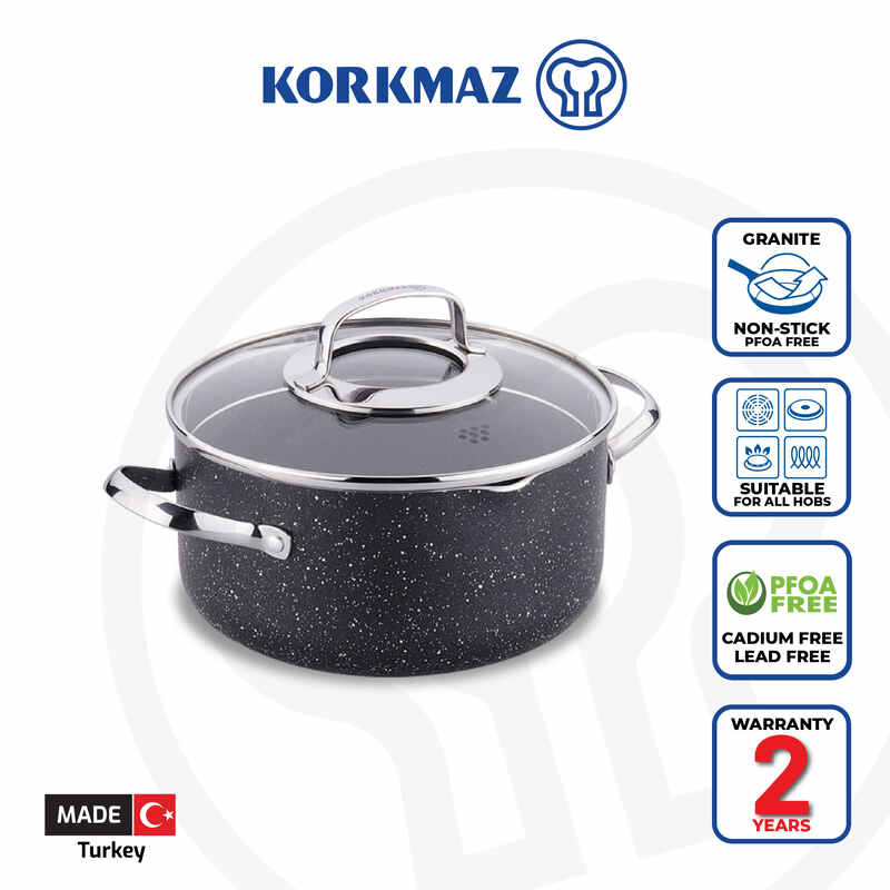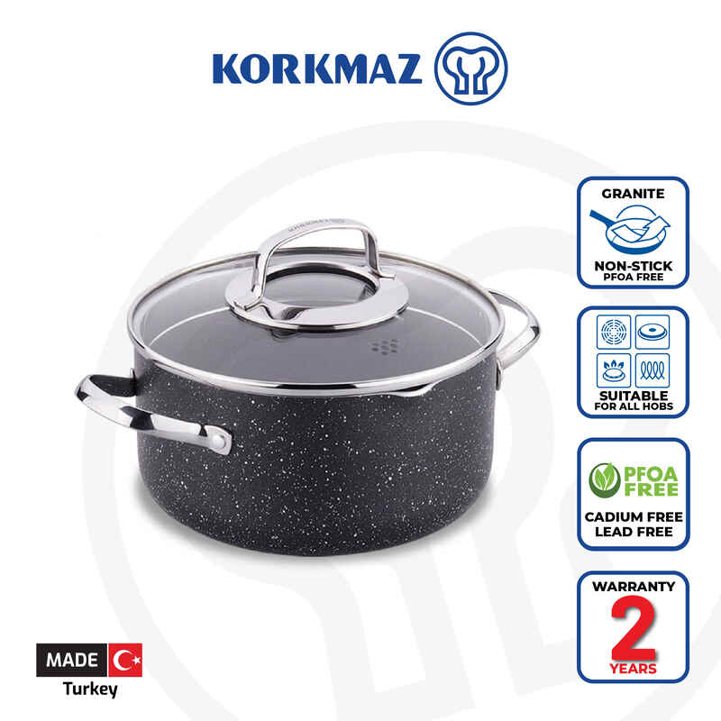 Korkmaz Granita Non-Stick Cooking Pot - Induction Compatible, Free From PFOA, Cadmium, and Lead, Made in Turkey