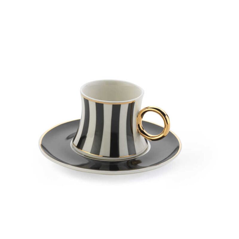 Korkmaz Freedom Coffee Espresso Cups with Saucers Set - Set of 6, Made in Turkey
