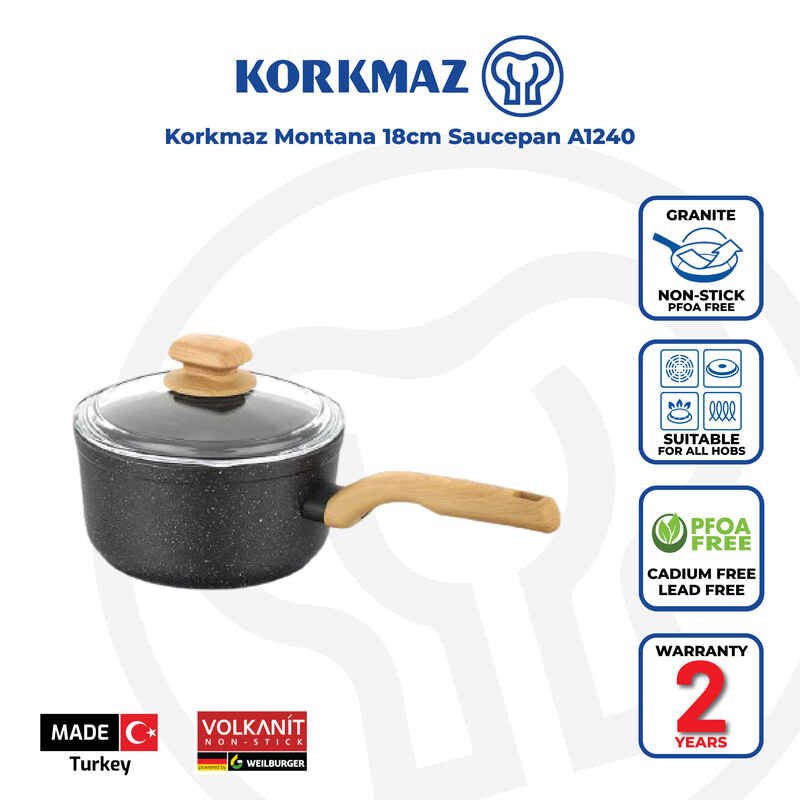 Korkmaz Montana Non-Stick Saucepan - Induction Compatible, Free From PFOA, Cadmium, and Lead, Made in Turkey