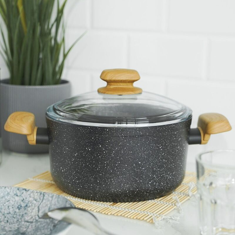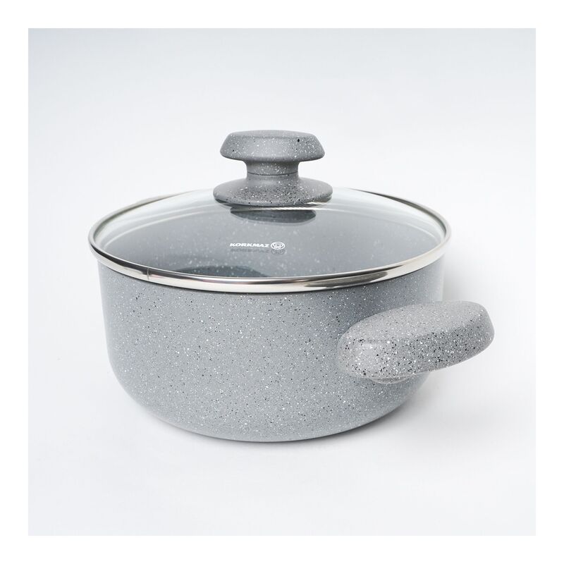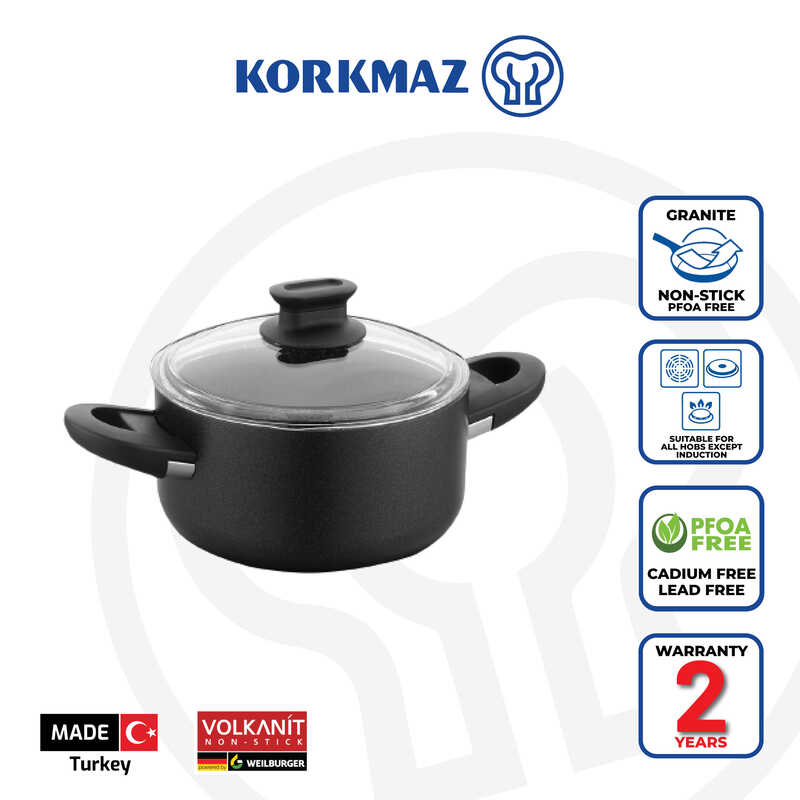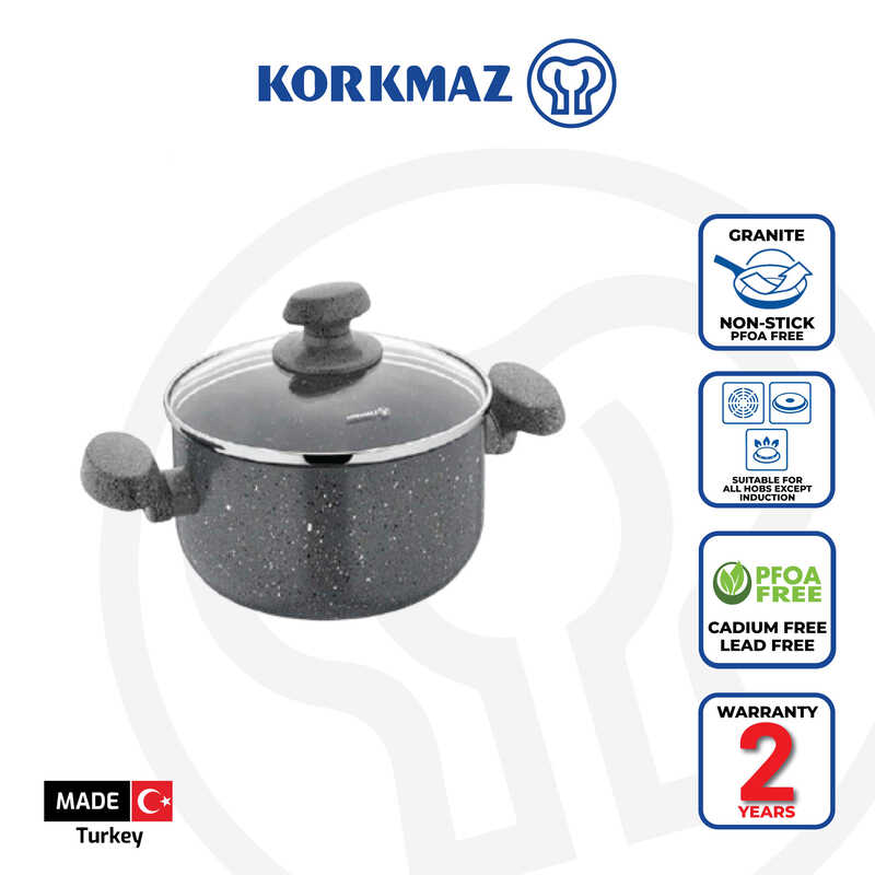 Korkmaz Mia Granite Non-Stick Cooking Pot with Lid - 20x9.3 cm, Made in Turkey