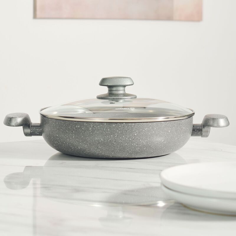 Korkmaz Mia Granite Non-Stick Frying Pan Skillet with Double Handle and Lid - 26x6.2cm, Made in Turkey