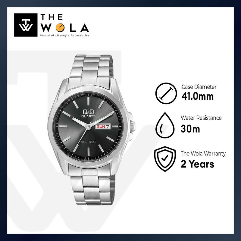 Q&Q Watch by Citizen A190J202Y Men Analog Watch with Silver Stainless Steel Strap