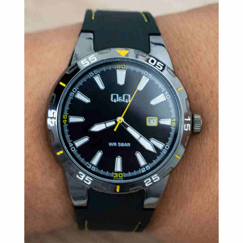 Q&Q Watch By Citizen A212J004Y Men Analog Watch with Black Rubber Strap