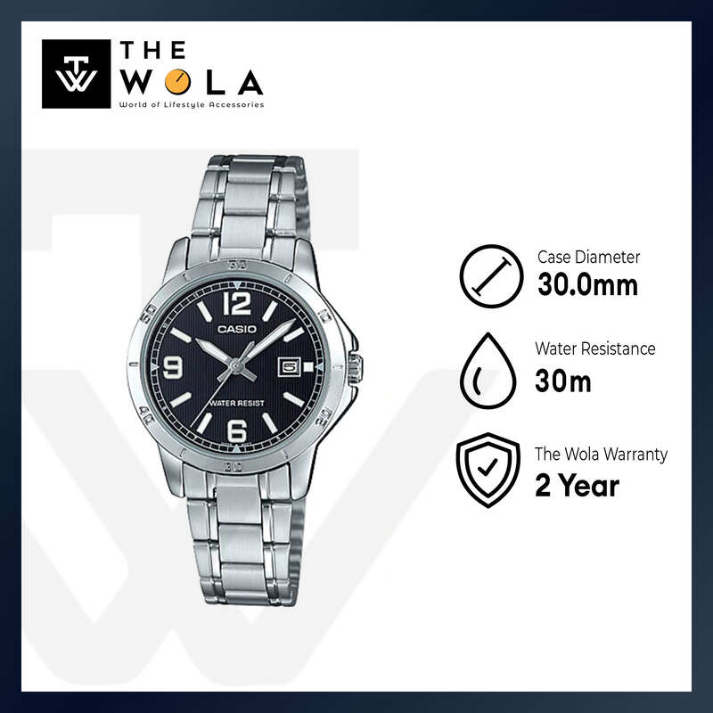 Casio Women Analog Watch LTP-V004D-1B2 Silver Stainless Steel Strap