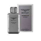 - The new opus comes in two intensities, each with its distinctive olfactory design: Bentley Momentum Eau de Toilette and Bentley Momentum Intense Eau de Parfum. Along with a higher, eau de parfum concentration, Bentley Momentum Intense builds up the intensity of the composition with new ingredients that heighten the contrast between top and base notes. Elemi, a resin with green, zesty and peppery facets, spices up a cool aromatic accord of lavender and geranium. Cutting-edge woody ambery notes boost the vibrancy of the blend.