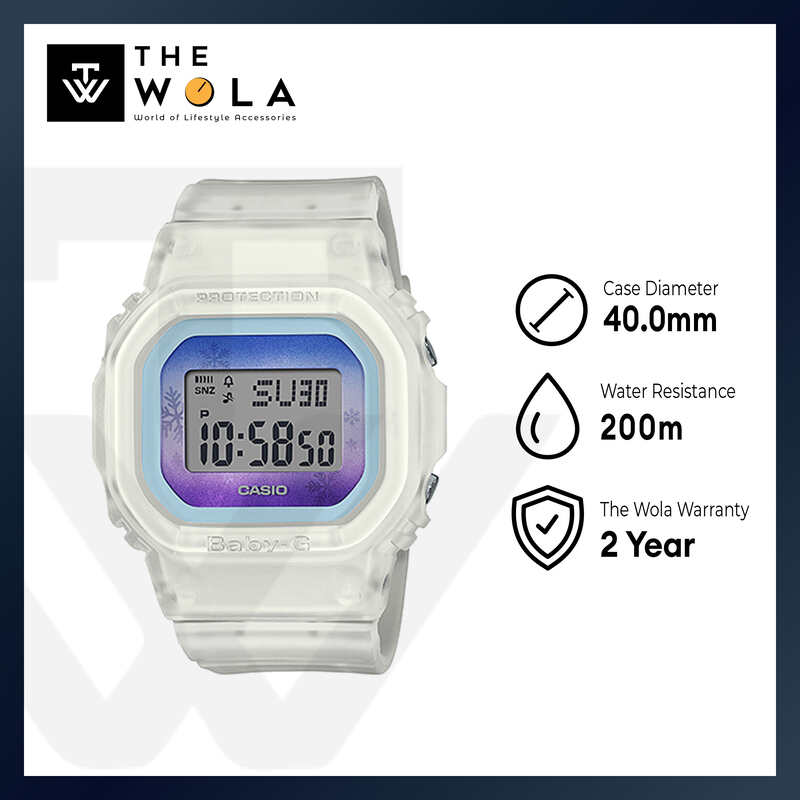 Casio Baby-G Women's Digital Watch BGD-560WL-7 Winter Sky Series Translucent White Resin Band Sport Watch