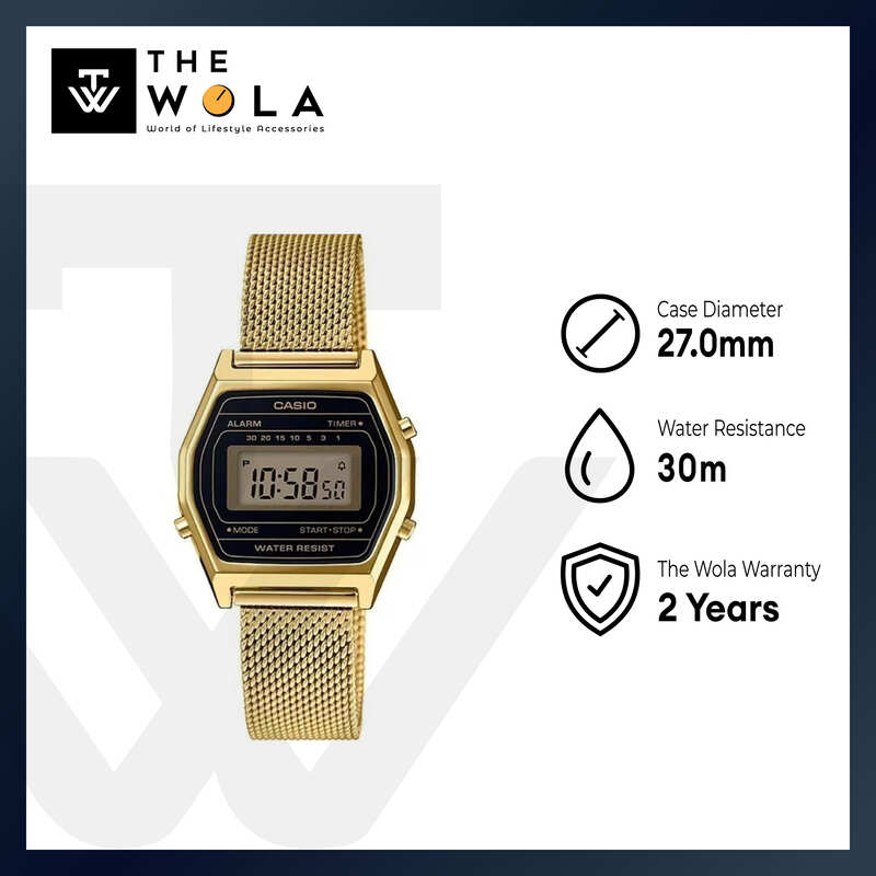Casio LA690WEMY-1 Women Digital Watch with Gold Stainless Steel Mesh Band