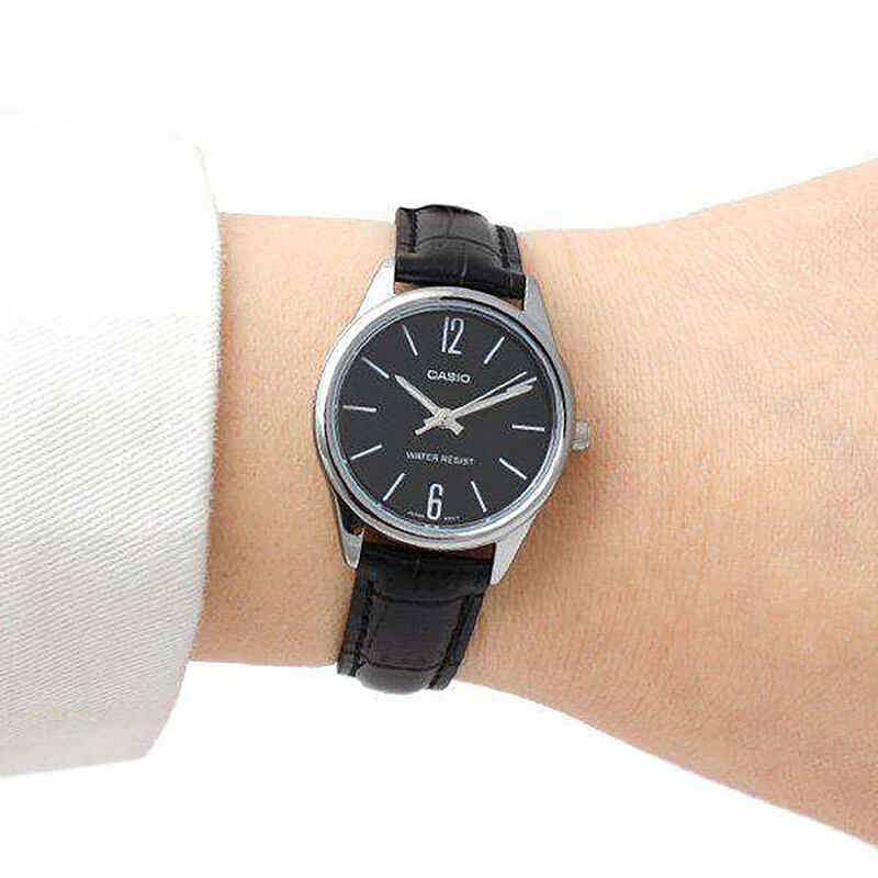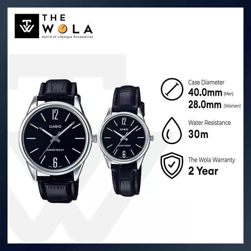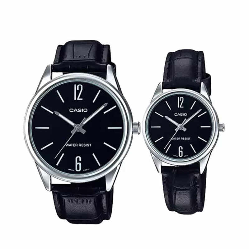 Casio Couple Watch Analog MTP-LTP-V005L-1B with Black Leather Band