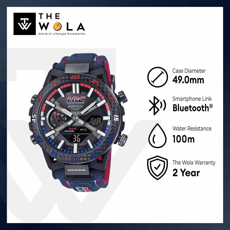 Casio Edifice x Honda Racing Collaboration ECB-2000HR-1A Men Analog-Digital Watch Blue Synthetic Strap w. Bluetooth
