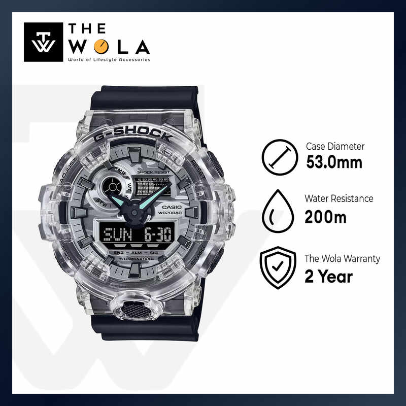 Casio G-Shock Men's Analog Digital Watch GA-700SKC-1A GA700SKC-1A Skc Semi-Transparent Black Resin Band Sports Watch