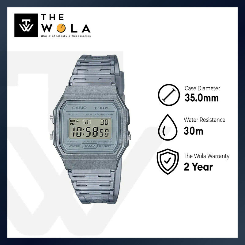 Casio Kids Digital Watch F-91WS-8 Grey semi-transparent Resin Band Watch
