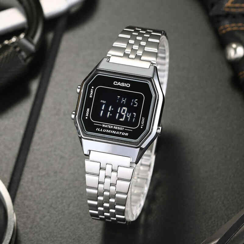 Casio LA680WA-1B Unisex Digital Watch with Silver Stainless Steel Band