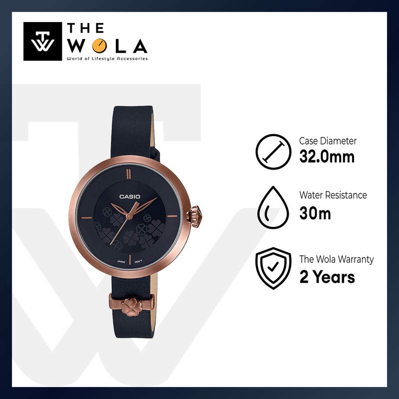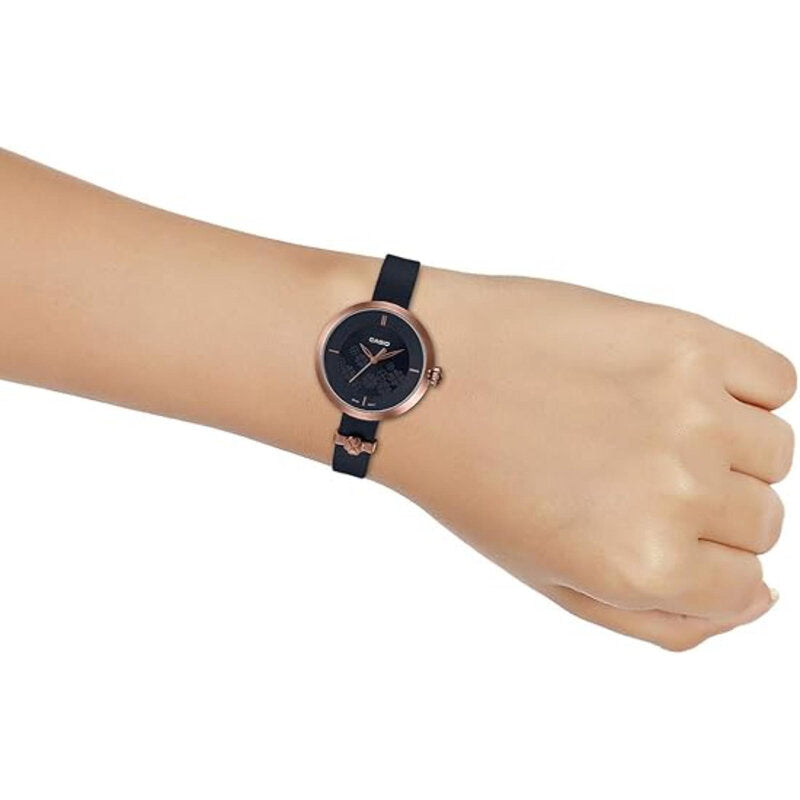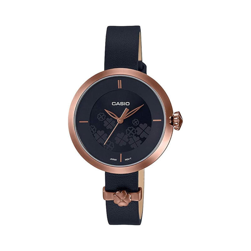 Casio LTP-E154RL-1A Women Analog Watch with Black Leather Band