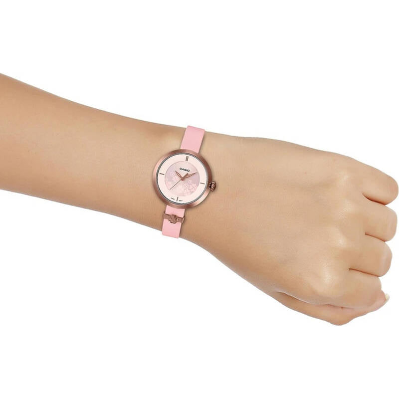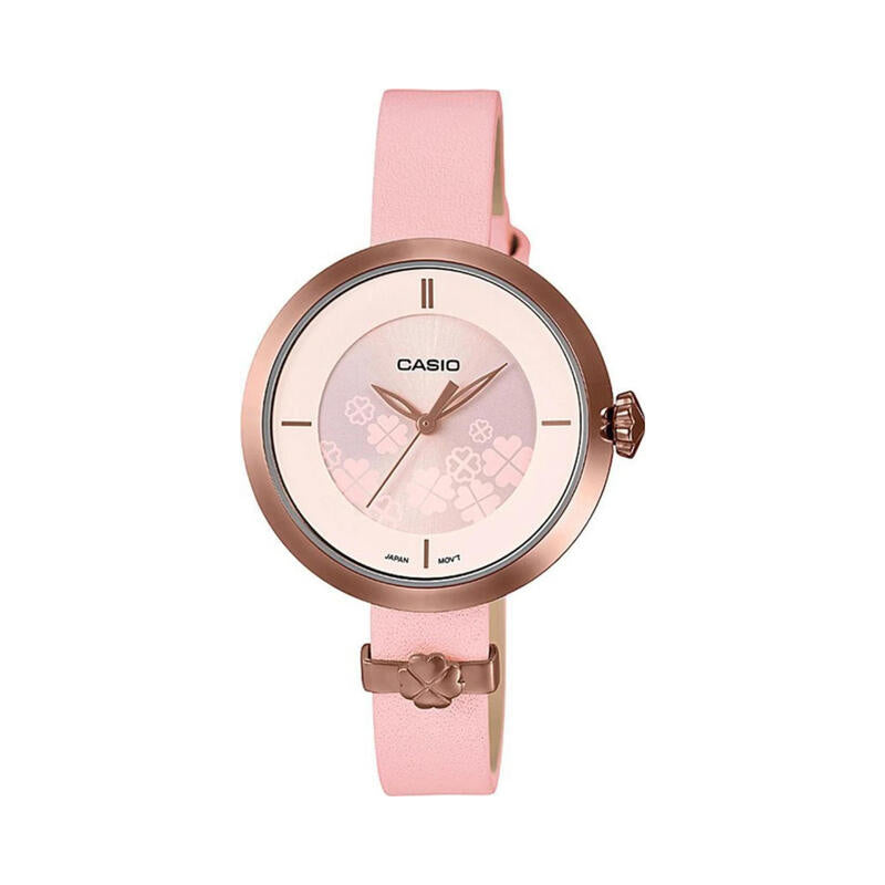 Casio LTP-E154RL-4A Women Analog Watch with Pink Leather Band