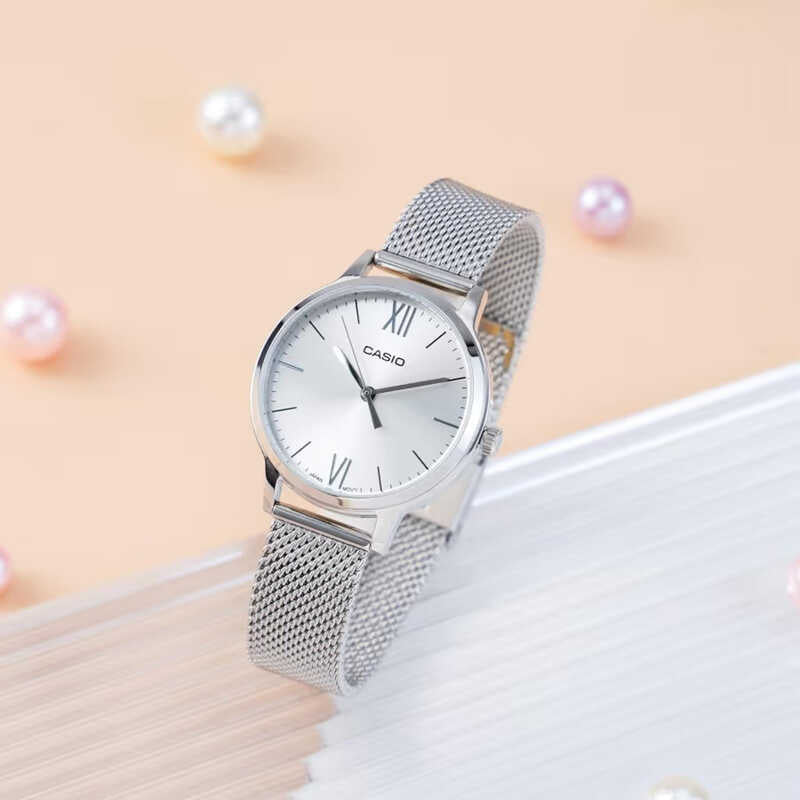 Casio LTP-E157M-7A Women Analog Watch with Silver Stainless Steel Band