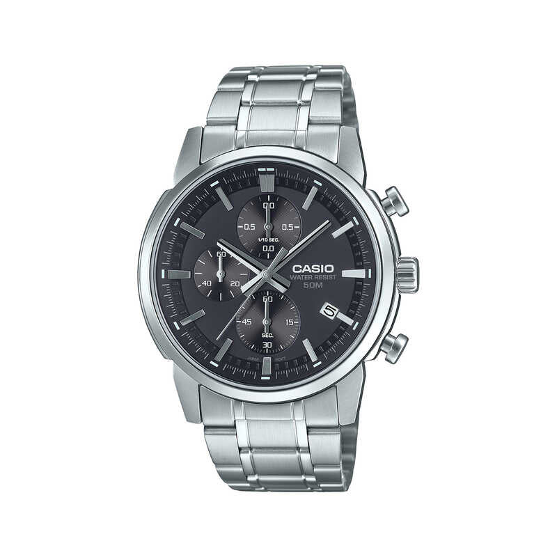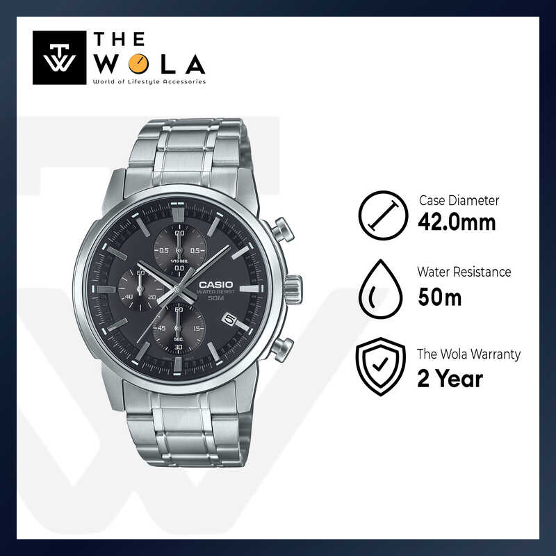 Casio Men Analog Watch MTP-E510D-1A1V Silver Stainless Steel Strap