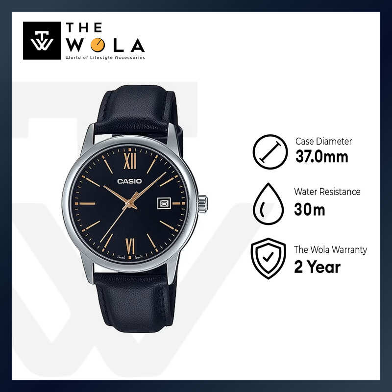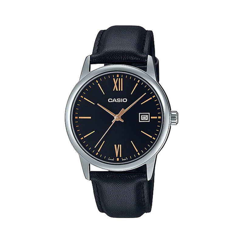Casio Men Analog Watch MTP-V002L-1B3 Black Leather Strap