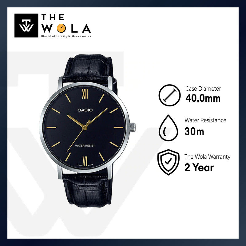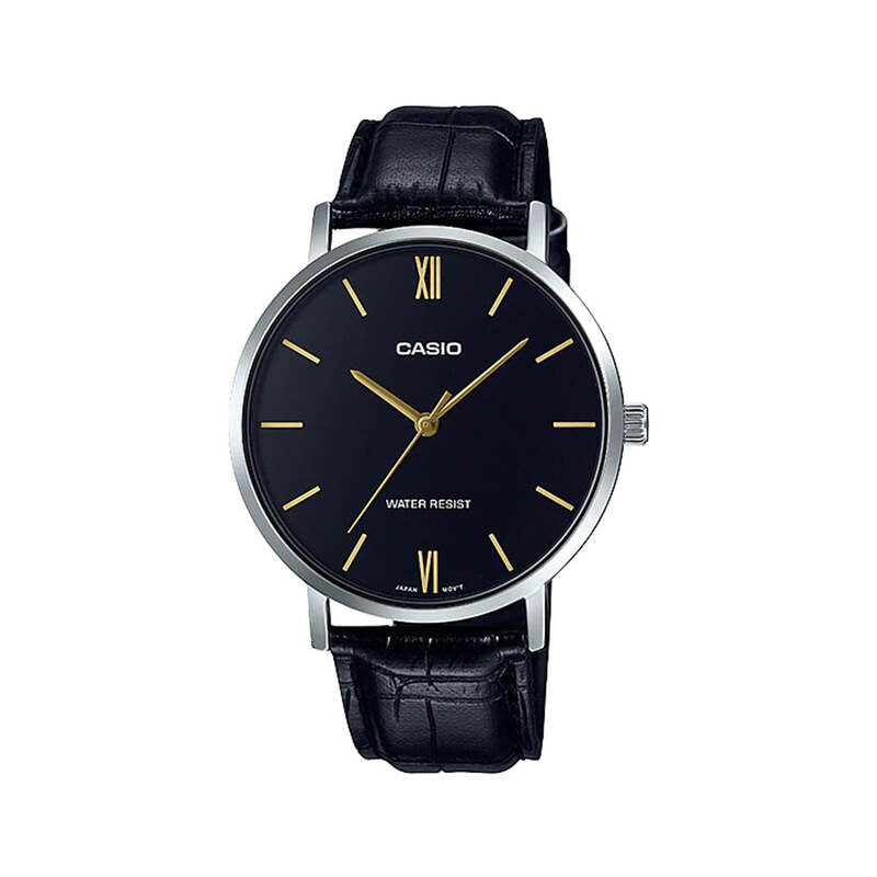 Casio Men Analog Watch MTP-VT01L-1B Black Leather Strap
