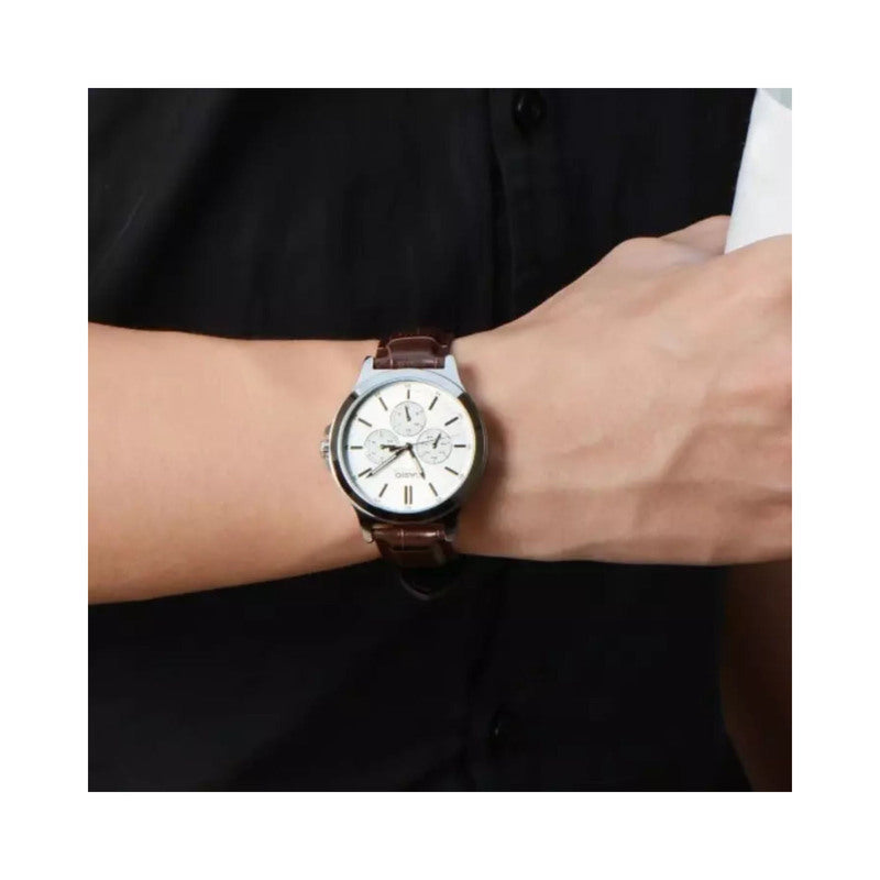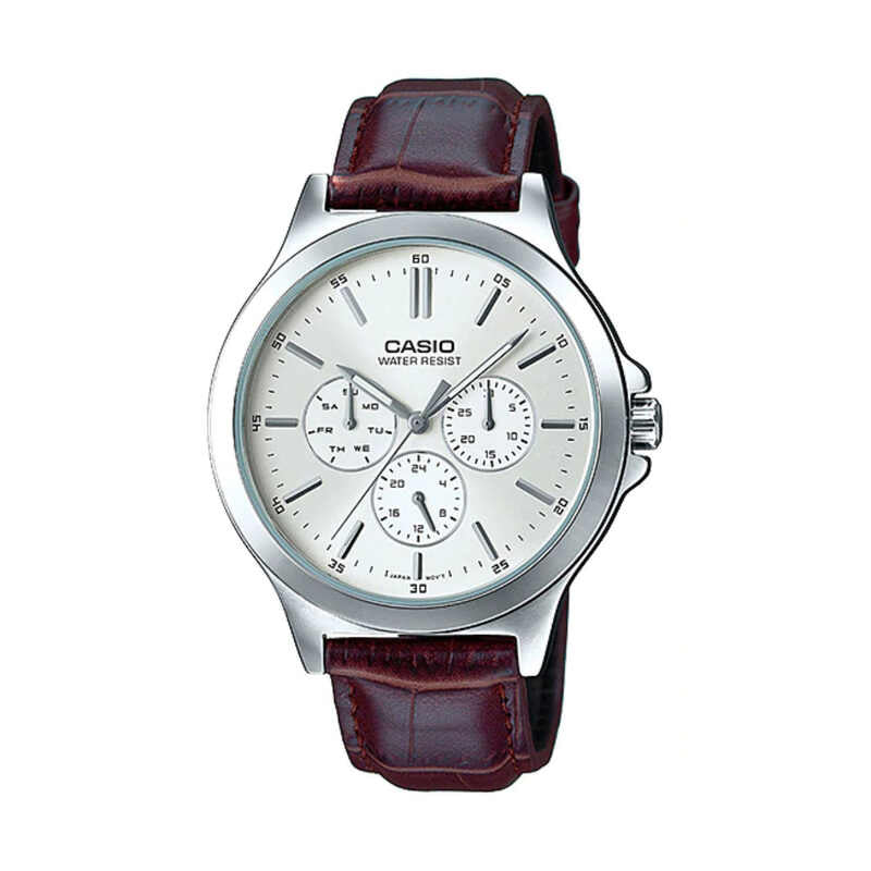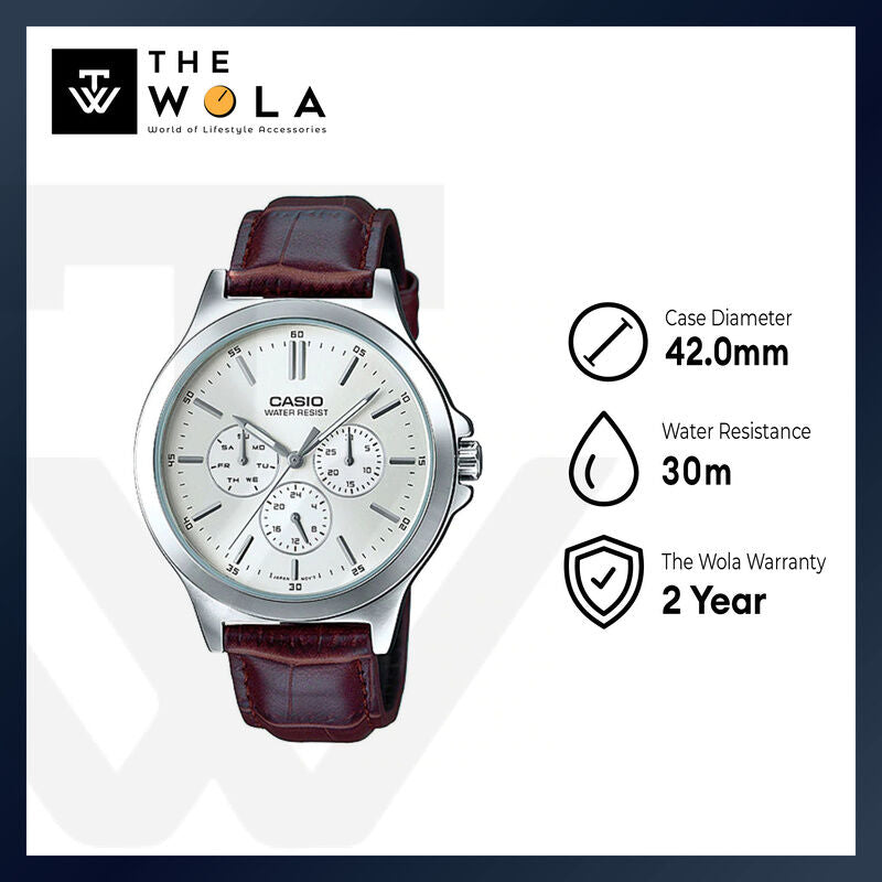 Casio Men Chronograph Watch MTP-V300L-7A Brown Leather Strap