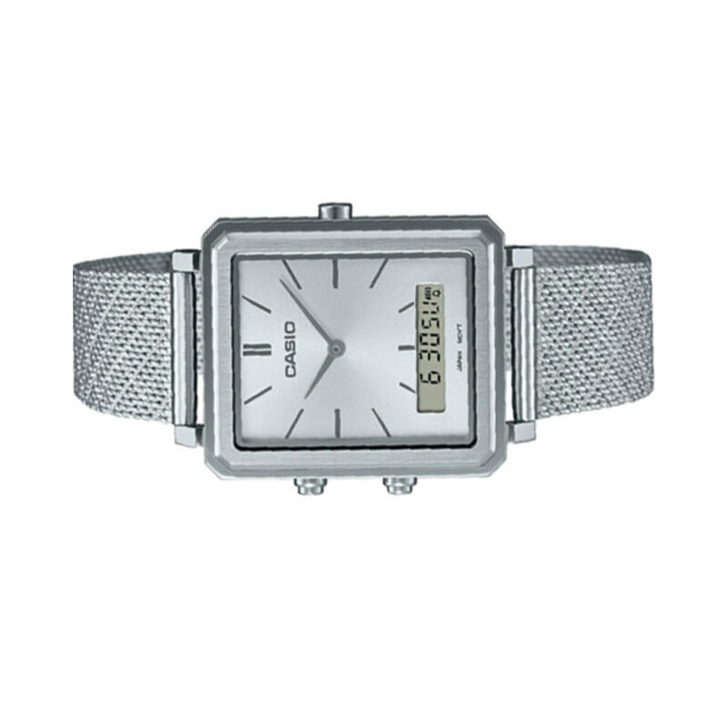 Casio Men's Analog-Digital Watch MTP-B205M-7E Silver Stainless Steel Mesh Band Watch for men