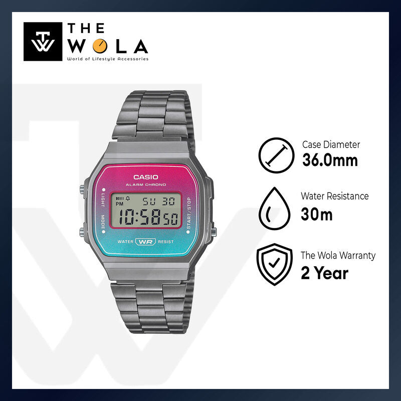 Casio Vintage Digital Watch A168WERB-2A Stainless Steel Band Unisex Watch