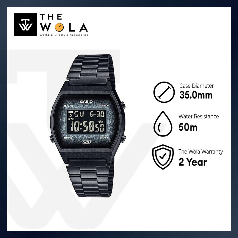 Casio Vintage Unisex Digital Watch B640WBG-1B Black Stainless Steel Strap