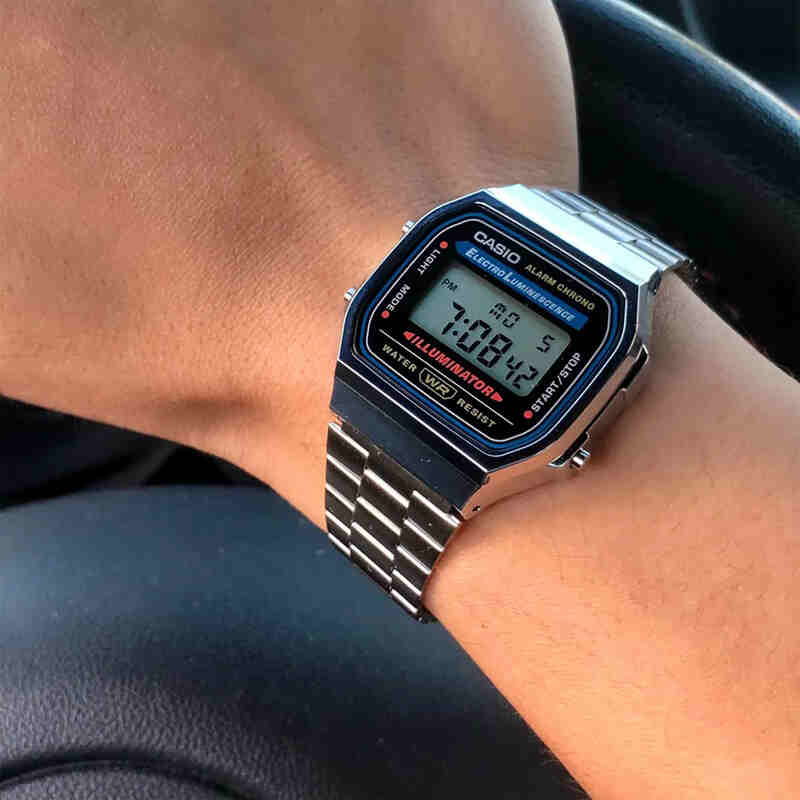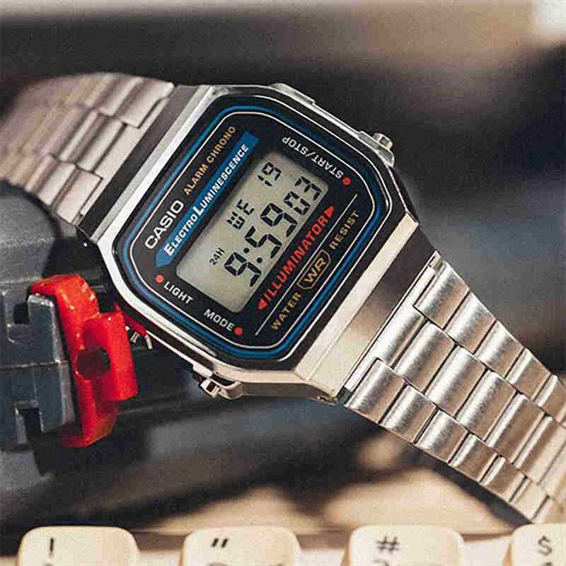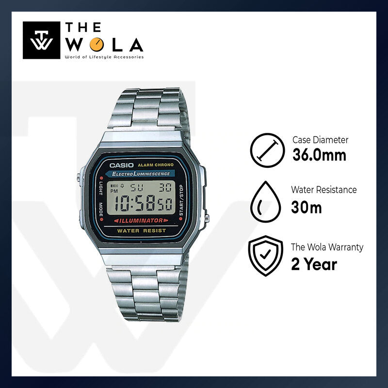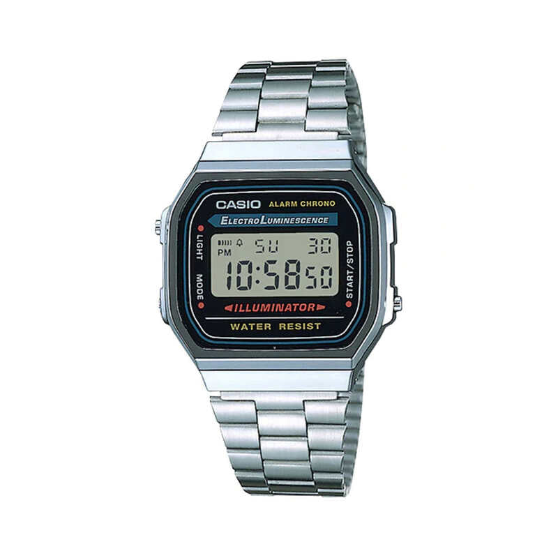 Casio A168WA-1 Men Digital Watch with Silver Stainless Steel Band
