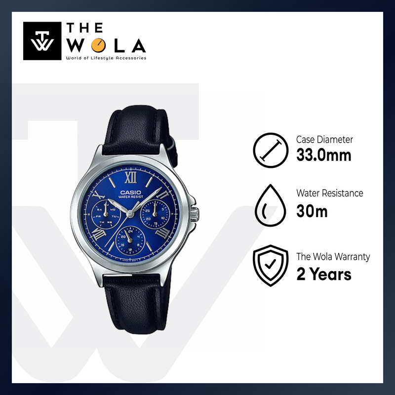 Casio LTP-V300L-2A2 Women Analog Watch with Black Leather Band