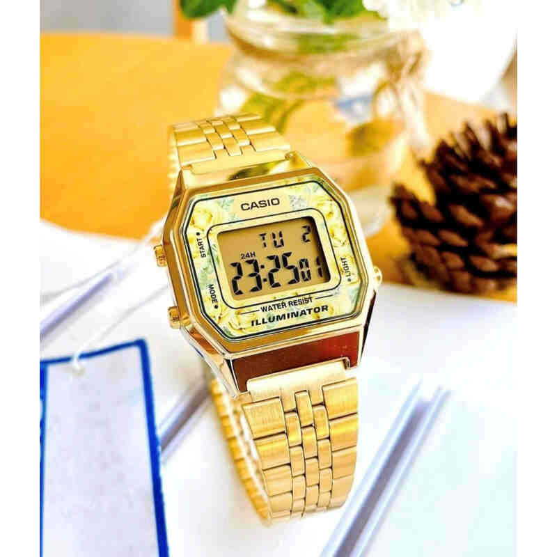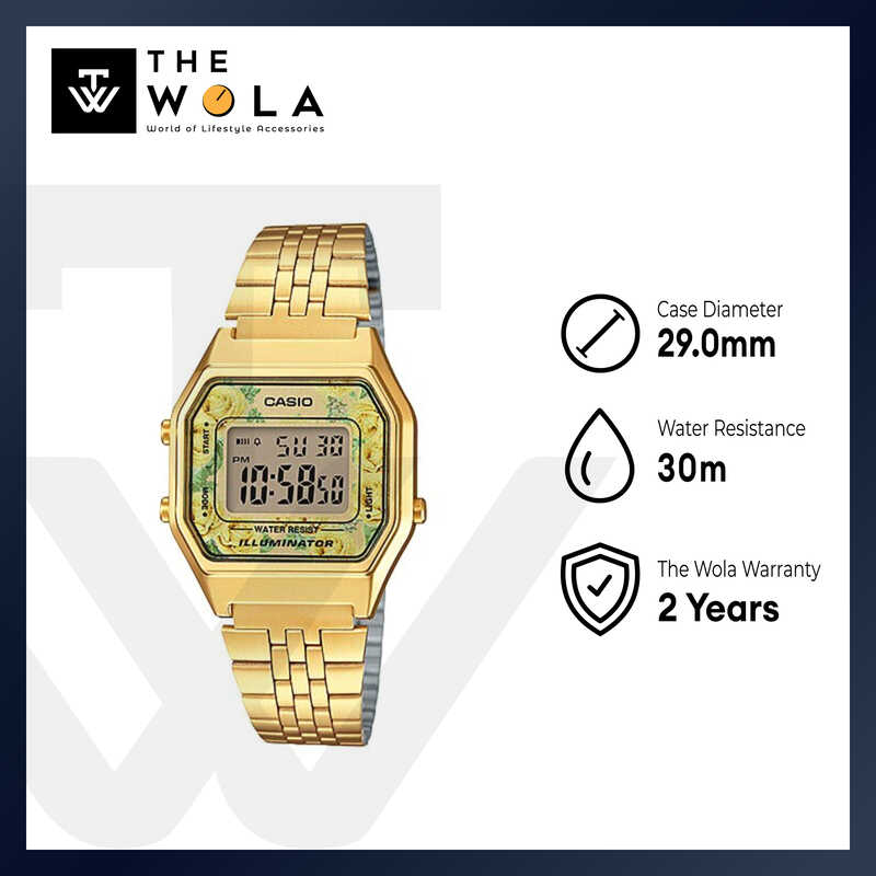 Casio LA680WGA-9C Women Digital Watch with Gold Stainless Steel Band