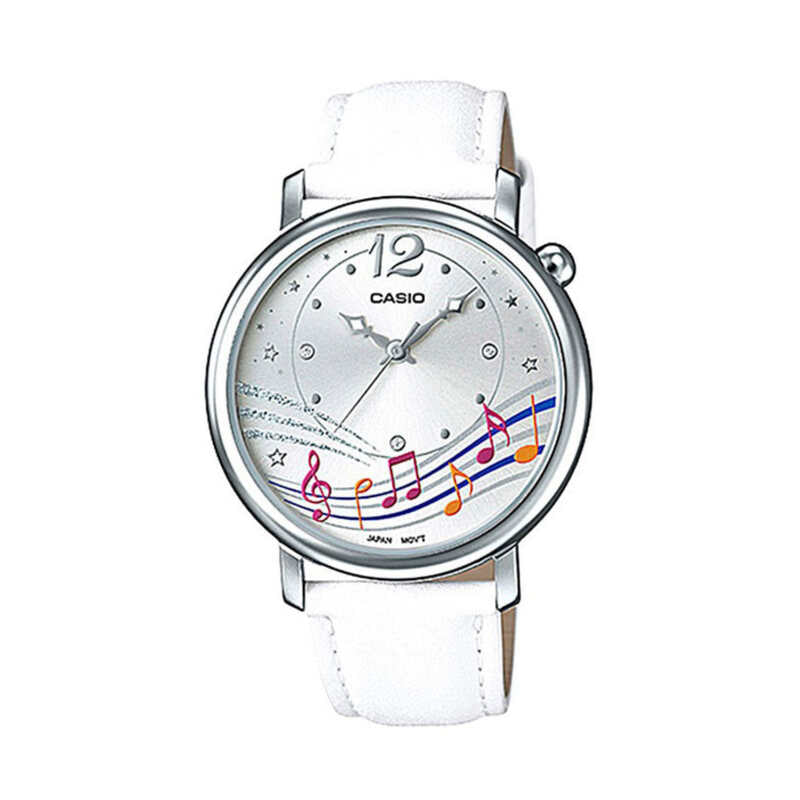 Casio LTP-E123L-7A Women Analog Watch with White Leather Band