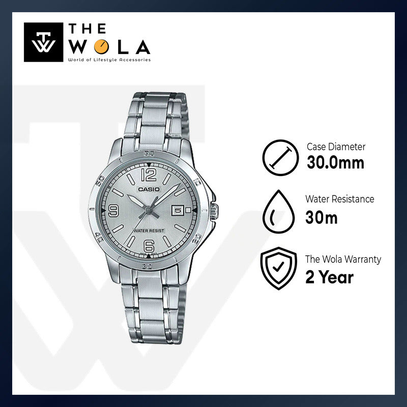 Casio LTP-V004D-7B2 Women Analog Watch with Silver Stainless Steel Band