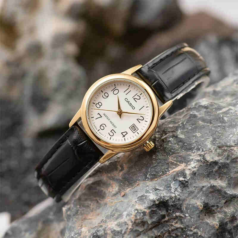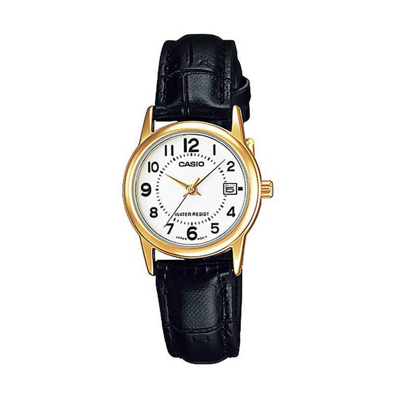 Casio LTP-V002GL-7B Women's Analog Watch with Black Leather Band
