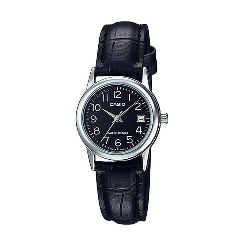 Casio LTP-V002L-1B Women Analog Watch with Black Leather Band
