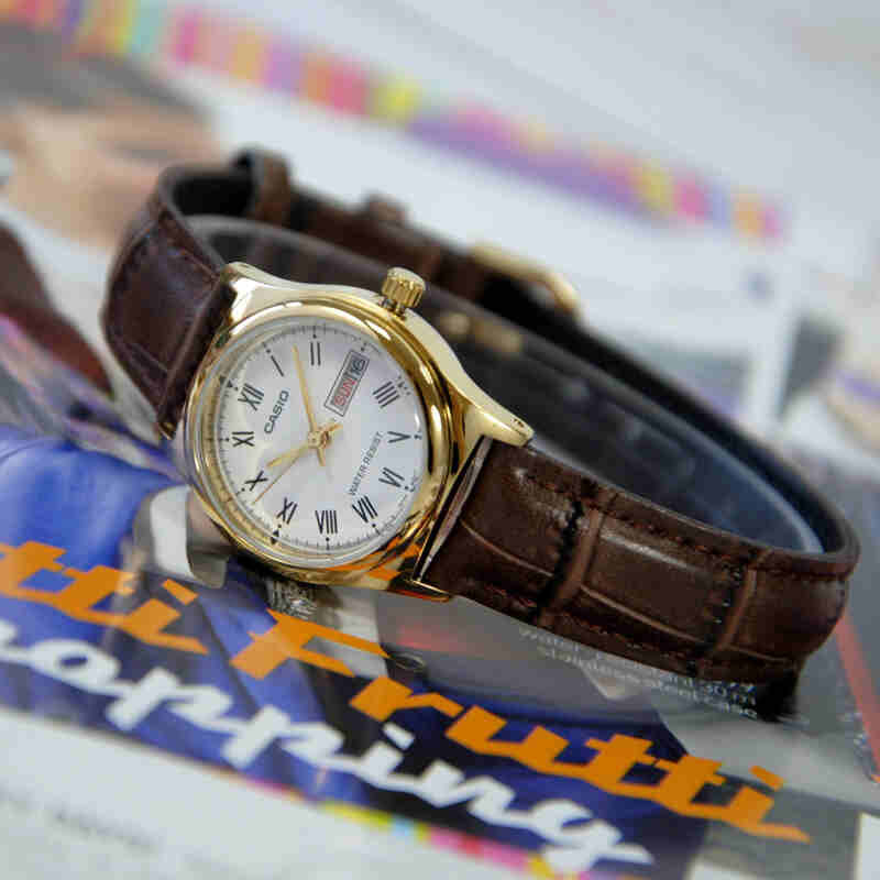 Casio LTP-V006GL-7B Women Analog Watch with Brown Leather Band