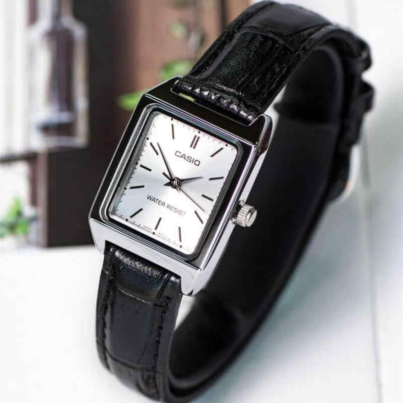Casio LTP-V007L-7E1 Women Analog Watch with Black Leather Band