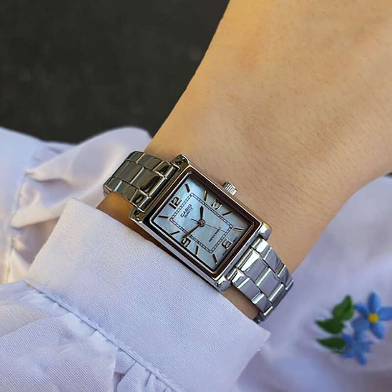 Casio Women Analog Watch LTP-1234DS-2A Silver Stainless Steel Strap