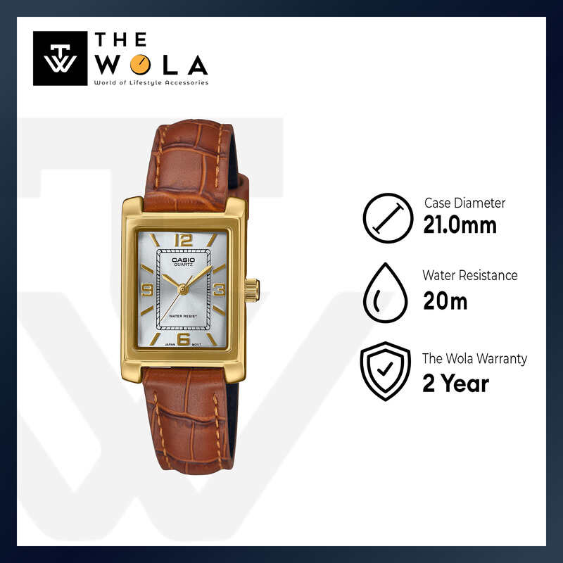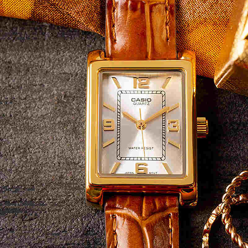 Casio Women Analog Watch LTP-1234GLL-7A Brown Genuine Leather Strap