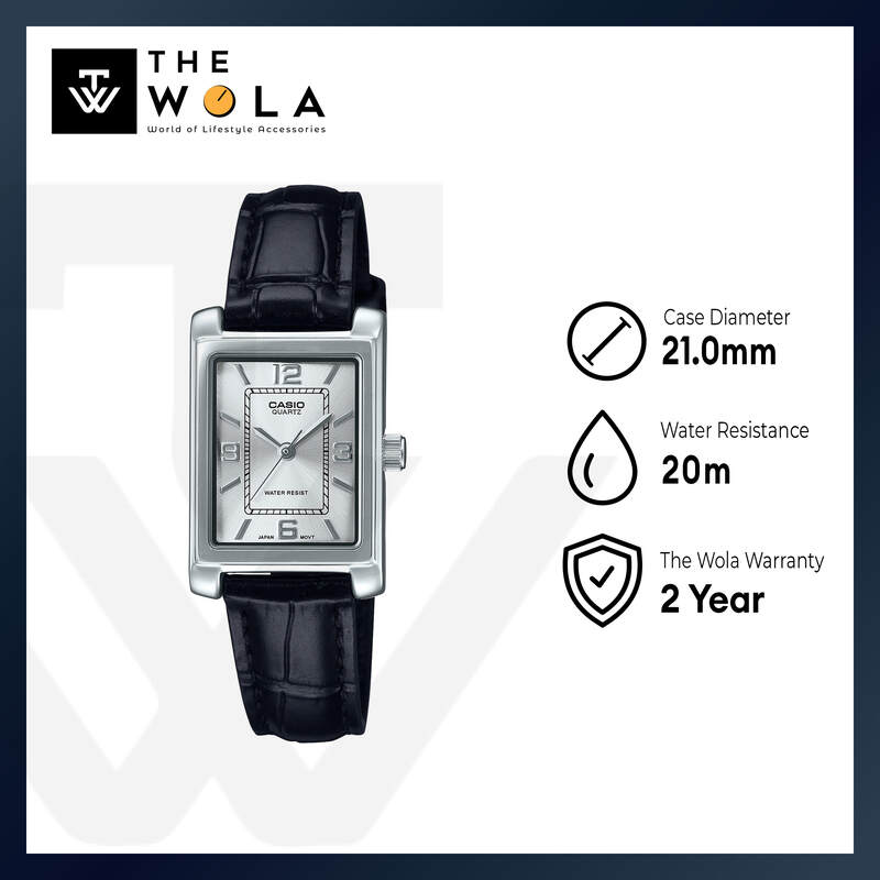 Casio Women Analog Watch LTP-1234LL-7A Black Genuine Leather Strap