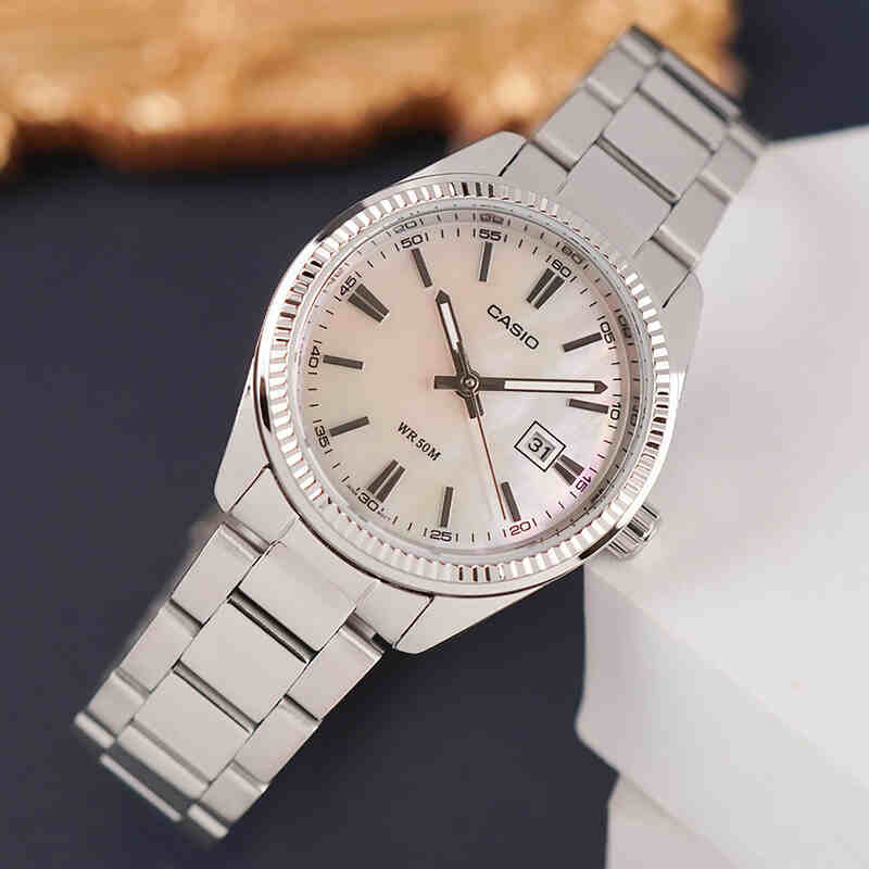 Casio Women Analog Watch LTP-1302DS-4AV Silver Stainless Steel Strap