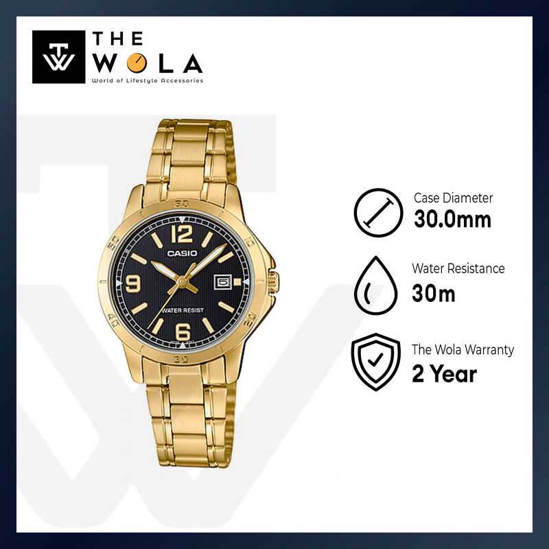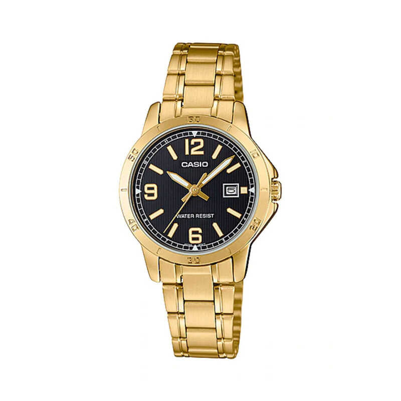 Casio Women Analog Watch LTP-V004G-1B Gold Stainless Steel Strap