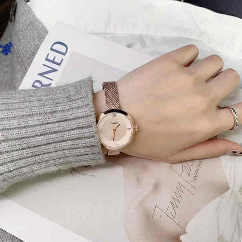 Casio LTP-E154MPG-4A Women Analog Watch with Rose Gold Stainless Steel Mesh Band